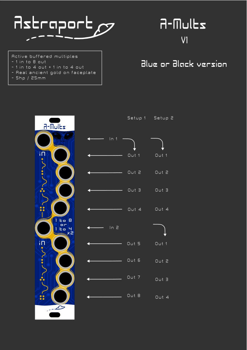 Active buffered eurorack multiples module with a variety of multiple out options.